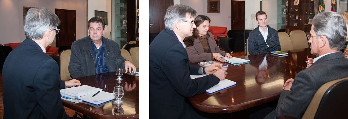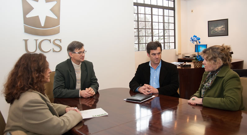 O secretário de Meio Ambiente de Caxias do Sul, Adivandro Rech, e a assessora Fernanda Bigarella, estiveram reunidos na tarde de hoje (10) com o reitor Evaldo Kuiava e a diretora do Museu de Ciências Naturais da UCS, professora Luciana Scur. No encontro, discutiu-se a criação de um instrumento legal que possibilite a gestão compartilhada do Jardim Botânico de Caxias do Sul, pela UCS, através do Museu de de Ciências Naturais, pela Prefeitura Municipal, através da Secretaria de Meio Ambiente, e pelo Serviço Autônomo Municipal de Água e Esgoto - SAMAE.