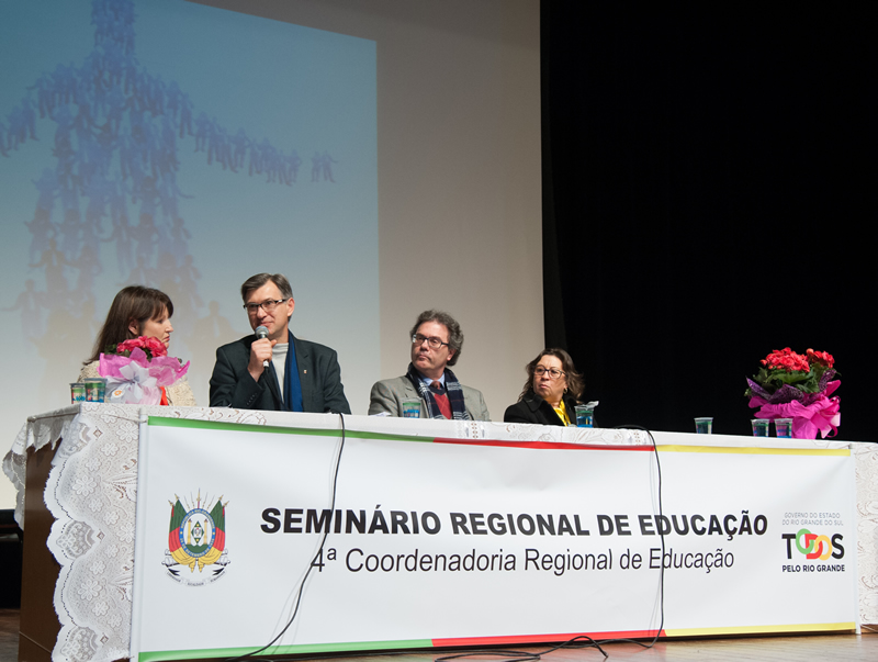 As atividades, pela manhã, procuraram refletir acerca das três dimensões que norteiam a política educacional do Estado: a democratização da gestão, o acesso à escola e o acesso ao conhecimento com qualidade. À tarde, o evento buscou possibilitar o diálogo entre os saberes organizados e sistematizados nas Redes de Educação, com as interfaces da Justiça Restaurativa, Promotoria de Educação, Defensoria Pública, Secretaria de Segurança, Brigada Militar, Conselhos Municipais e Comissão Interna de Prevenção à Violência na Escola (CIPAVE), para que, de forma integrada, pudessem refletir junto à comunidade escolar e traçar caminhos para o enfrentamento aos conflitos geradores da violência entre os muros da escola.