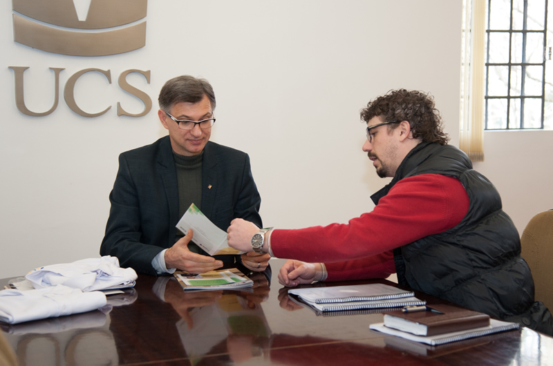 Na última quarta-feira, dia 22, o reitor Evaldo Antonio Kuiava recebeu em seu Gabinete o coordenador do Curso de Tecnologia em Polímeros da UCS, Diego Piazza. A reunião teve como objetivo principal a apresentação de novas estratégias para o curso de Polímeros, com vistas ao cenário atual do mercado para esse segmento.