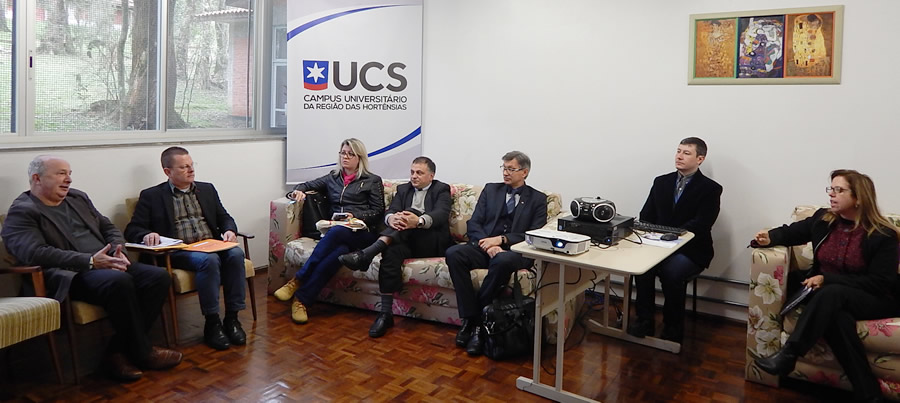 O reitor Evaldo Kuiava deu as boas-vindas ao grupo, enfatizando que muitos dos que estavam ali eram egressos da UCS. Ele também destacou que a Universidade é parceira da comunidade em muitas iniciativas e que na área do Turismo, o Programa de Hospitalidade contribui para o desenvolvimento do setor, tanto na formação e qualificação de profissionais como na busca de soluções inovadoras que potencializem as atividades do setor. O presidente do Conselho Municipal de Turismo, Emerson Spadetto, agradeceu pela acolhida da Universidade e declarou que o COMTUR conta com a UCS para o fortalecimento do Turismo em Caxias do Sul.