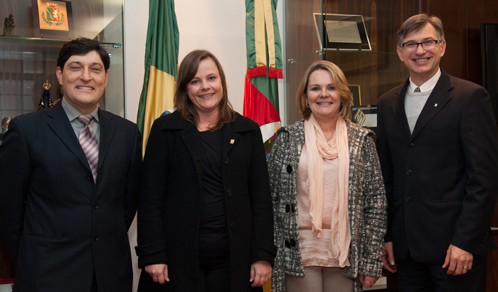 Davenir Darci Dreher e Analice Carrer, presidente e vice-presidente da Câmara de Digentes Lojistas de Caxias do Sul estiveram no Gabinete do Reitor, nesta quarta-feira, dia 4 de junho, para participar de encontro com gestores da Instituição. Os representantes do CDL reafirmaram o prestígio da Universidade como formadora de profissionais nas diferentes áreas de conhecimento e manifestaram interesse em estabelecer parcerias entre as duas instituições nas áreas de ensino e serviços.