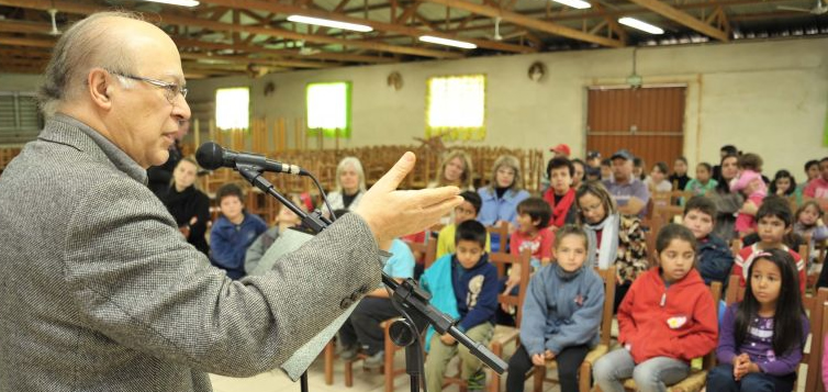 O professor Jayme Paviani participou, na manhã desta segunda-feira, dia 16, do lançamento do Programa Primeira Infância Leitora (PILAR) da Prefeitura Municipal de Caxias do Sul em evento realizado no salão paroquial de São Jorge da Mulada, no Distrito de Criúva.