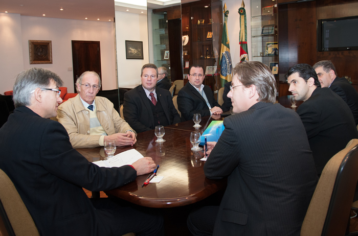 Membros da diretoria do CREA (Conselho Regional de Engenharia e Agronomia), da SEEAQ ( Associação de Engenheiros, Arquitetos, Agrônomos,Químicos e Geólogos de Caxias do Sul) e da AENE (Associação dos Engenheiros Agrônomos da Encosta Superior Nordeste) estiveram no Gabinete do Reitor para desejar sucesso à nova gestão da Instituição.