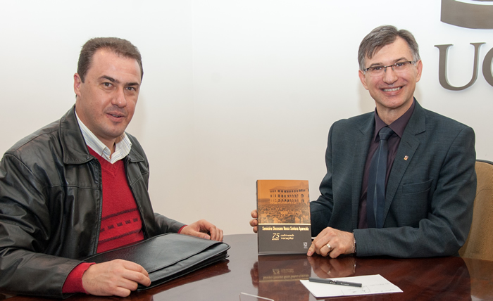 Pe. Edmundo José Marcon presenteou o reitor Evaldo Kuiava com o livro Seminário Diocesano Nossa Senhora Aparecida - 75 Anos Cultivando Vocações, lançado pela EDUCS em 2013. O livro, organizado pelos padres Edmundo José Marcon e Lucas Antônio Mazzochini, resgata a história dessa importante instituição de ensino religioso que marcou a vida de milhares de pessoas da região e do estado.
