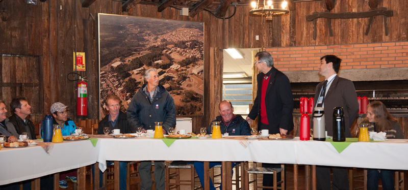 Nesse mesmo dia, a Reitoria esteve reunida com lideranças de Flores da Cunha para tratar de melhorias na Escola de Gastronomia UCS. O encontro teve a participação do prefeito, Lídio Scortegagna, do presidente da Câmara, Jorge Godoy, e do presidente do Centro Empresarial de Flores da Cunha, Vanderlei Andéa Dondé (foto à direita).