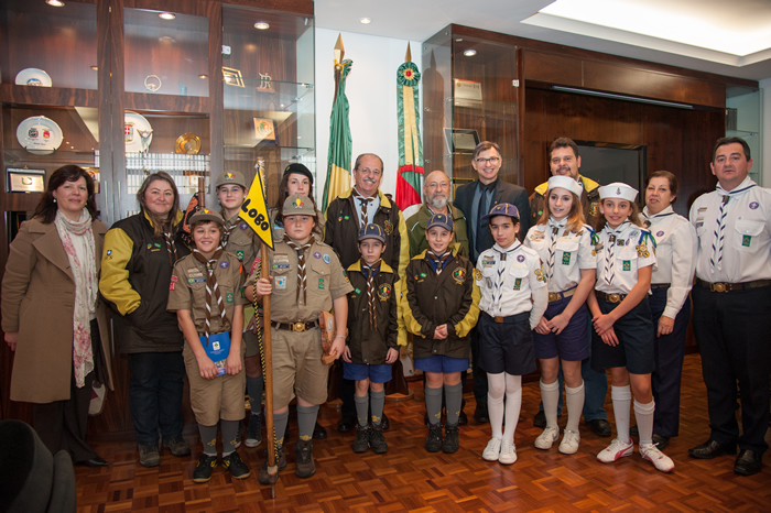 Ainda, na segunda-feira, dia 23, representantes do Grupo Escoteiro do Mar Barão de Tefé e do Grupo Escoteiro Saint Hilaire, que têm sedes na Cidade Universitária, estiveram na Reitoria para dar as boas-vindas e convidar a equipe gestora da UCS para conhecer suas instalações (foto à direita). Eles agradeceram pela cessão de espaços no campus para a realização de suas atividades, entre elas um projeto em parceria com a UCS na área de reciclagem de lixo eletrônico. Eles também convidaram o reitor para participar do encontro que abrirá as festividades da Semana da Pátria na cidade.
