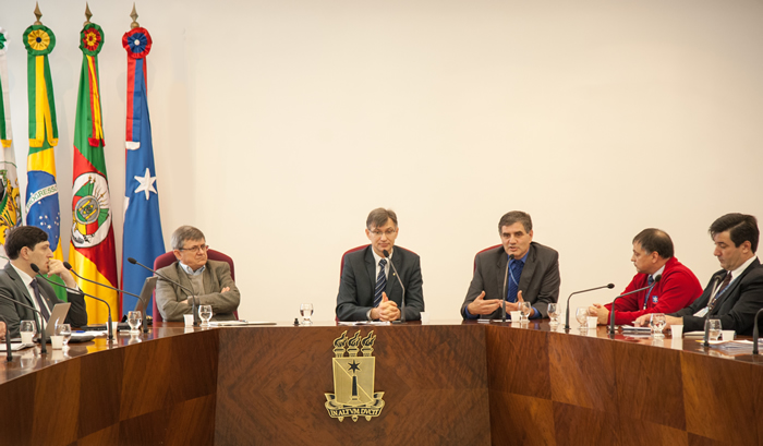 Na reunião mensal com os diretores das Unidades Universitárias, realizada na manhã desta quinta-feira, dia 12 de junho, a Reitoria apresentou a nova configuração das pró-reitorias Acadêmica; de Pesquisa e Pós-Graduação; e de Inovação e Desenvolvimento Tecnológico. Na ocasião, os coordenadores das pró-reitorias se apresentaram, explicando a abrangência da sua área de atuação. Ao dar as boas-vindas aos coordenadores, o reitor Evaldo Kuiava enfatizou as diretrizes que devem nortear as ações da Instituição em todos os níveis: "Excelência, Sustentabilidade, Qualidade, sempre na perspectiva da ação conjunta entre todas as áreas".