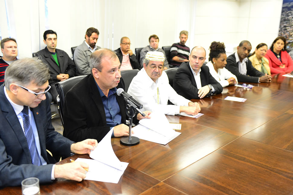 O reitor Evaldo Kuiava participou na manhã de hoje (28), na Prefeitura Municipal de Caxias do Sul, da cerimônia de assinatura do protocolo de intenções para a formação da Rede Municipal de Promoção de Igualdade Racial, uma iniciativa do poder público municipal que tem o apoio de diversas entidades representativas da comunidade caxiense. Participaram da cerimônia: o prefeito Alceu Barbosa Velho, a primeira-dama e coordenadora de Comunicação, Alexandra Baldisserotto, o vice-prefeito Antonio Feldmann, o Chefe de Gabinete Agenor Basso, o secretário municipal da Segurança Pública e Proteção Social em Exercício, José Francisco Barden da Rosa e demais secretários municipais, o titular da Coordenadoria da Igualdade Racial, Diógenes de Oliveira Brasil, o presidente da Câmara de Vereadores, Edi Carlos Pereira de Souza e demais vereadores, a defensora pública Letícia Ana Basso, o diretor da Faculdade da Serra Gaúcha (FSG), Adriano Pistori, a presidente do Conselho Municipal da Comunidade Negra (COMUNE), Maria Geneci Silveira, a presidente do Conselho Municipal dos Direitos da Mulher (COMDIM), Irani Lima, a titular da Delegacia para a Mulher, Carla Zanetti, e representantes da União das Associações de Bairros (UAB), 4ª Coordenadoria Regional de Ensino, Coletivo de Negros Empregados dos Correios (CONCOR), Templo Africano de Oxum e Ogum Reino dos Orixás, Grupo de Capoeira Conquistador da Liberdade, demais convidados e integrantes da Rede.