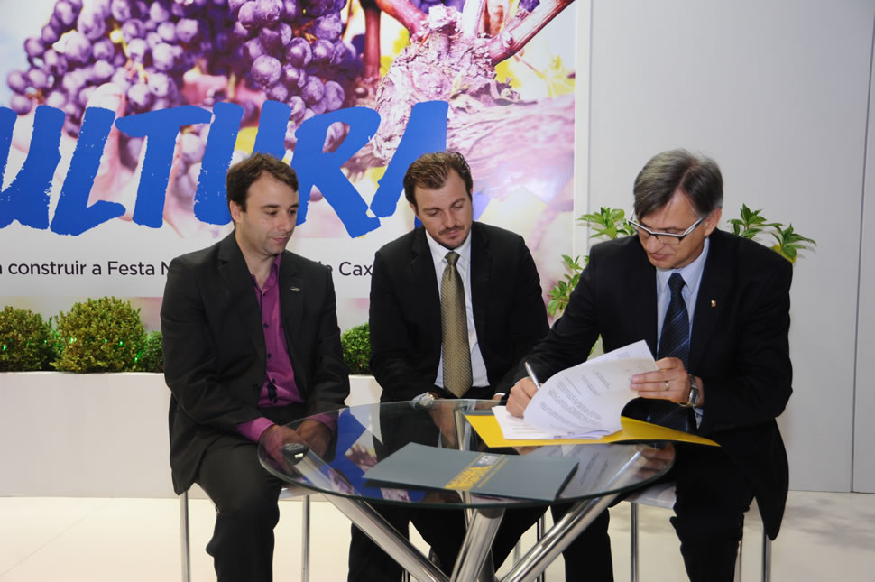 A Universidade de Caxias do Sul e o Serviço de Apoio às Micro e Pequenas Empresas do Estado do Rio Grande do Sul (SEBRAE) assinaram na tarde desta sexta-feira (4), no estande da UCS na Festa da Uva, convênio de cooperação técnica e financeira para a execução do Projeto Negócio a Negócio, desenvolvido pelo SEBRAE em parceria com instituições de ensino superior de todo o Estado. O projeto oferece atendimentos em gestão empresarial para microempresas com faturamento bruto anual de até R$ 360 mil e possibilita aos estudantes participantes o reforço dos conteúdos acadêmicos e o conhecimento da realidade da microempresa no Estado.