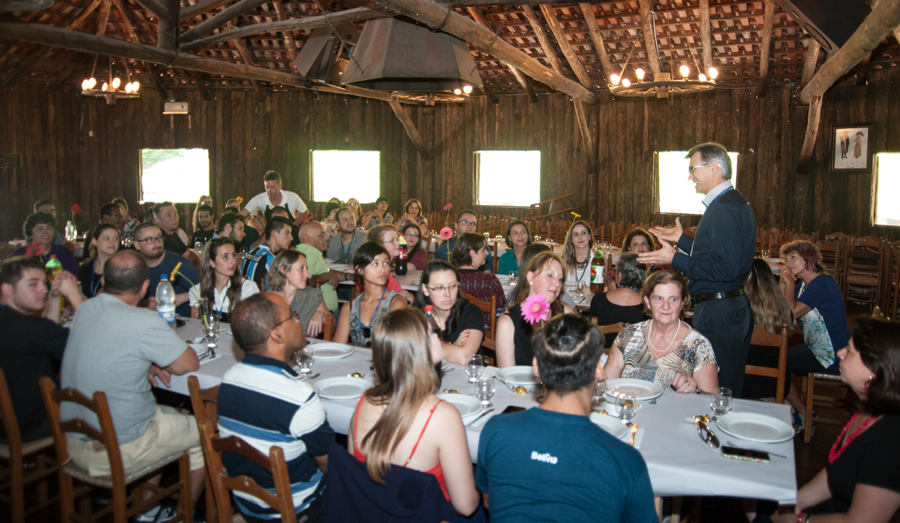 Nesta sexta-feira, dia 18, foi realizado, no Galpão Crioulo do campus-sede, a primeira edição do Almoço de Confraternização com a Reitoria, iniciativa que visa à aproximação da instância administrativa da Universidade com as equipes que trabalham nas diversas estruturas da UCS. O encontro inicial contou com a presença de funcionários do Centro de Ciências Sociais (CCSO), do Centro de Ciências Jurídicas (CCJU), do Centro de Artes e Arquitetura (CEAA) e da Pró-Reitoria de Pesquisa e Pós-Graduação (PPPG).