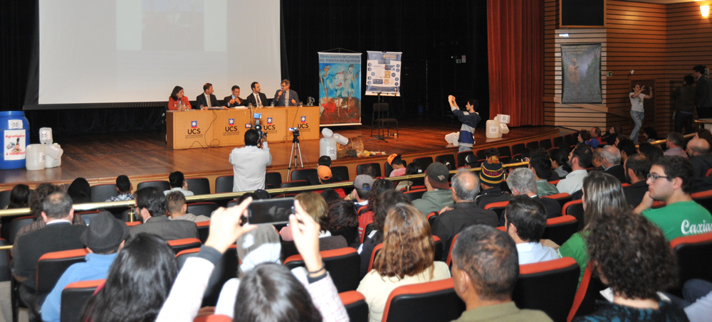 O reitor Evaldo Kuiava deu as boas-vindas aos participantes da Audiência Pública convocada pelo Fórum Gaúcho de Combate aos Impactos do Uso dos Agrotóxicos, realizada na tarde desta quarta-feira (4) no UCS Teatro, com o objetivo de informar, coletar dados, debater e propor encaminhamentos sobre o impacto do uso de agrotóxicos na saúde humana, no meio ambiente e na segurança alimentar dos consumidores.