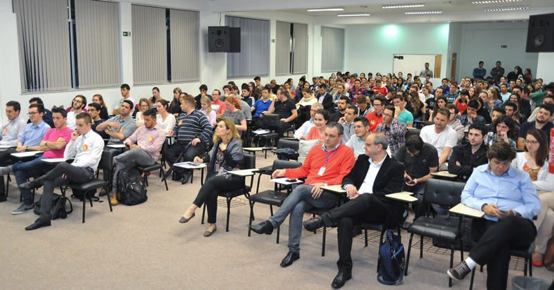 Os professores, estudantes e convidados que prestigiaram a solenidade também participaram da primeira atividade realizada no novo auditório: o painel "Falando da Economia: conjuntura atual e perspectivas", conduzido pelos professores do curso de Ciências Econômicas, Cláudio Maximiliano Branchieri, Gilberto Dal Zotto e Reinaldo Boeira Duarte.