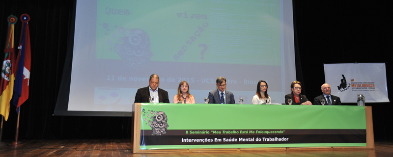 Durante o dia de hoje (11), no UCS Teatro, realiza-se o 2º Seminário "Meu Trabalho Está Me Enlouquecendo", que irá debater temas como depressão, estresse e Burnout no ambiente de trabalho. A proposta é sensibilizar as organizações públicas e privadas para o desenvolvimento e implementação de políticas de saúde mental do trabalhador. O seminário é uma promoção conjunta do Conselho Regional de Psicologia do Rio Grande do Sul, do Centro de Referência Regional em Saúde do Trabalhador (CEREST/Serra) e do Sindicato dos Trabalhadores Metalúrgicos de Caxias do Sul e Região.