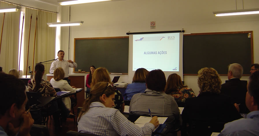Um grupo de gestores da UCS participa, até quarta-feira, dia 15, de atividade de capacitação com professores finlandeses sobre a Pedagogia da Inovação. Quatro tópicos estão sendo desenvolvidos no curso, que teve início na manhã desta segunda-feira (13), ministrado pelos professores Liisa Kairisto-Mertanen e Ari Juhani Putkonen da Universidade de Ciências Aplicadas de Turku, da Finlândia: Pedagogia da Inovação como uma abordagem de aprendizagem; Métodos de Pedagogia da Inovação e ambientes de aprendizagem; Projeto Incubadora: Incubadora de Pesquisa e Incubadora Global; e Avaliação de competências de Inovação.