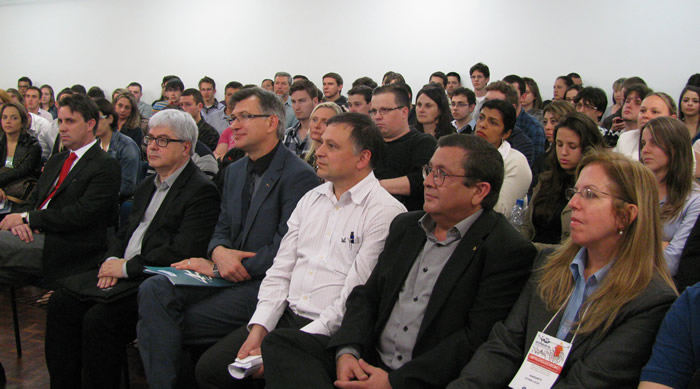 O pró-reitor Acadêmico, Marcelo Rossato, e o pró-reitor de Inovação e Desenvolvimento Tecnológico e vice-reitor, Odacir Deonisio Graciolli, participaram na quinta e sexta-feira, respectivamente, do 5º Simpósio em Neuromecânica Aplicada - Adaptação ao Exercício, Reabilitação e Treinamento, que começou ontem no auditório do Bloco J, na Cidade Universitária, e prossegue até amanhã, dia 25. O evento é uma parceria entre a UFRGS e a UCS, com o apoio da UNIPAMPA.