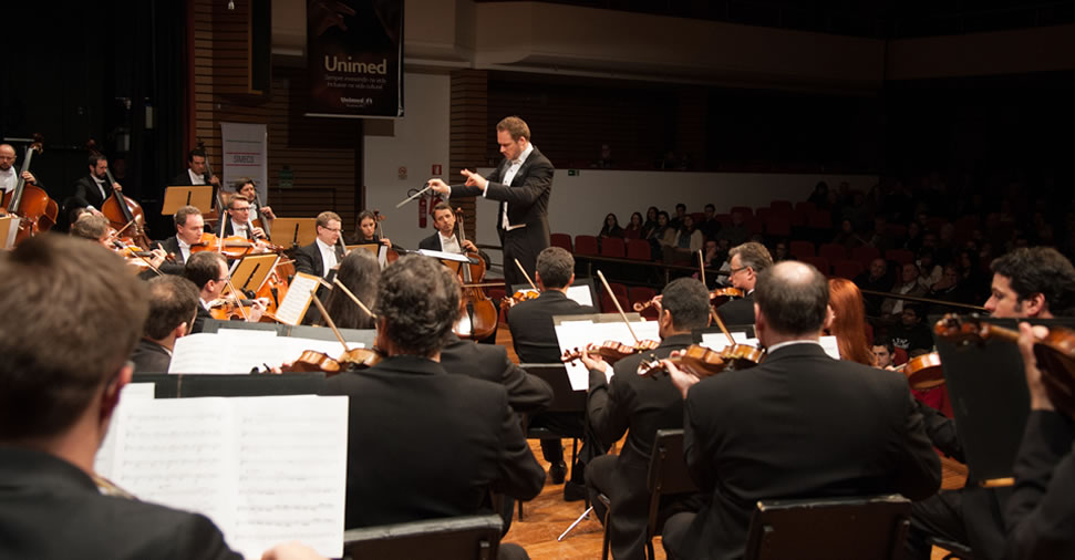 A Orquestra Sinfônica da Universidade, dentro da programação das Quintas Sinfônicas, realizou na noite de ontem (10) uma homenagem a uma importante instituição da cidade: a a Câmara de Dirigentes Lojistas de Caxias do Sul (CDL Caxias), que este ano comemora 50 anos de atividades. O Concerto, realizado no UCS Teatro, teve a regência do maestro Tobias Volkmann, e na abertura, o reitor Evaldo Kuiava e a presidente da CDL Caxias, Analice Carrer, deram as boas-vindas ao público, destacando as parcerias que unem as duas entidades para a prestação de melhores serviços à comunidade caxiense.
