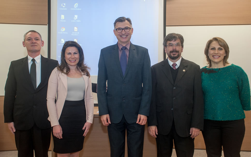 Os pesquisadores da Instituição estiveram reunidos na tarde desta segunda-feira para participar de encontro conduzido pela pró-reitora de Pesquisa e Pós-Graduação, Nilda Stecanela, e pelo coordenador de Pesquisa, Guilherme Holsbach Costa, para dar encaminhamento às ações que vêm sendo realizadas no sentido de aperfeiçoar o modelo de pós-graduação e pesquisa que se realiza na Instituição.
