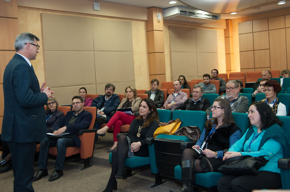 O reitor Evaldo Kuiava e a pró-reitora de Pesquisa e Pós-Graduação, Nilda Stecanela, participaram do 5º Encontro de Coordenadores dos Cursos de Pós-Graduação Lato Sensu, que teve como objetivo atualizar os coordenadores sobre as melhores práticas adotadas em suas atividades, bem como, informá-los sobre o direcionamento estratégico da Pós-Graduação Lato Sensu na UCS.