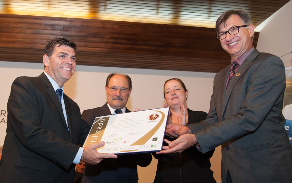 A cerimônia de entrega do certificado de Acreditação Hospitalar, no nível III (de excelência em gestão) ao Hospital Geral de Caxias do Sul, nesta sexta-feira, 10 de março, foi marcada pela presença de autoridades políticas federais, estaduais, regionais e comunidade. Eles prestigiaram o momento em que a diretora de Avaliação e Certificação do Instituto Brasileiro de Excelência em Saúde (IBES), Vanice Costa, fez a entrega do certificado ao governador José Ivo Sartori, ao reitor Evaldo Antonio Kuiava e ao diretor-geral do Hospital Geral, Sandro de Freitas Junqueira.
