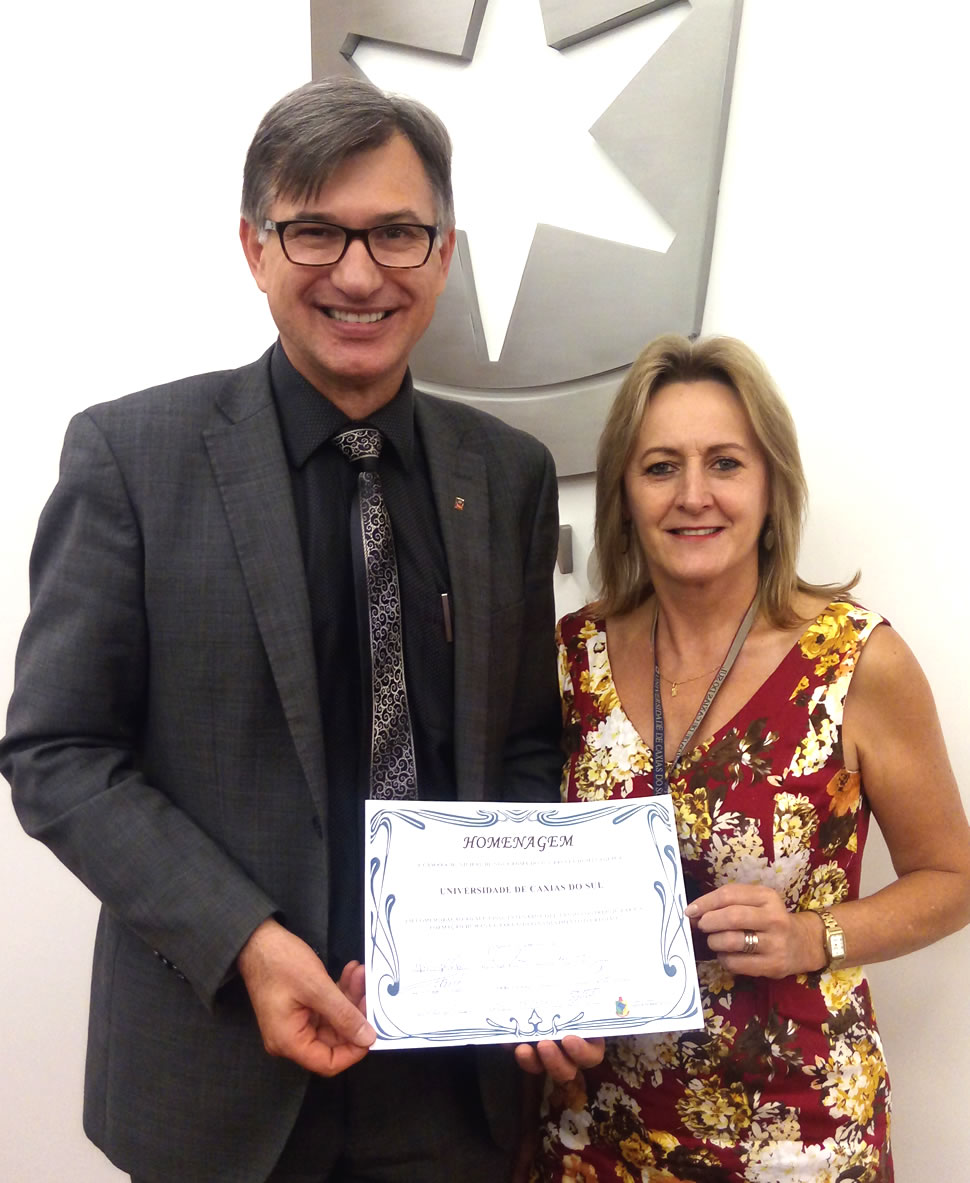 A Reitoria continua recebendo homenagens da comunidade regional alusivas ao aniversário de 50 anos de criação da Universidade, comemorados no dia 10 de fevereiro. Representando a Câmara Municipal de Nova Roma do Sul, a vereadora Odete Araldi Bortolini entregou ao reitor Evaldo Kuiava, nesta da sexta-feira, um documento assinado por todos os vereadores expressando o agradecimento pela contribuição que a Universidade dá "à formação humana e ao desenvolvimento regional".