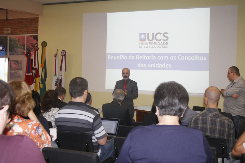 Com a reunião no Campus Universitário de Vacaria, na última quinta-feira, dia 16 de março, a Reitoria deu início à programação de reuniões com os conselhos das unidades universitárias, que se estenderá durante todo o ano, visando à integração das unidades universitárias com a administração superior da Universidade e o acompanhamento das atividades que visam responder às diretrizes do Planejamento Estratégico.