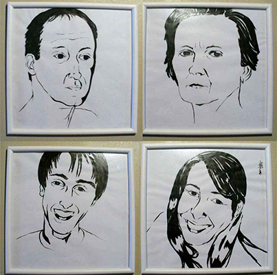 Cristiane Vanin - Acadêmica de Licenciatura em Artes Visuais, políptico em grafite e nanquim, Quatro Retratos: Um Autorretrato, 2007.