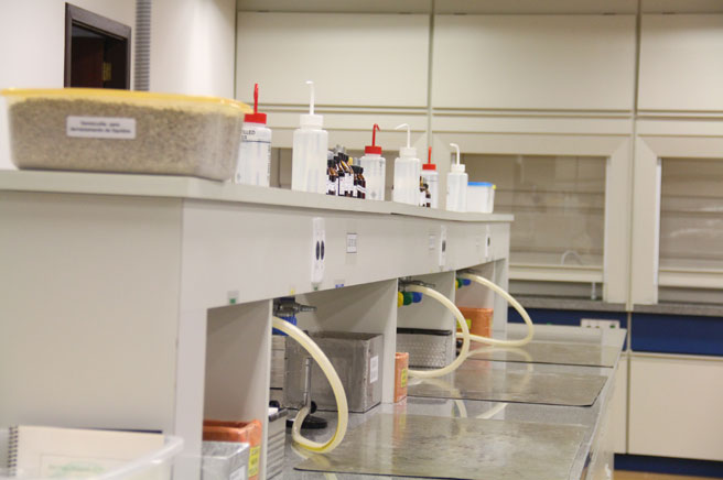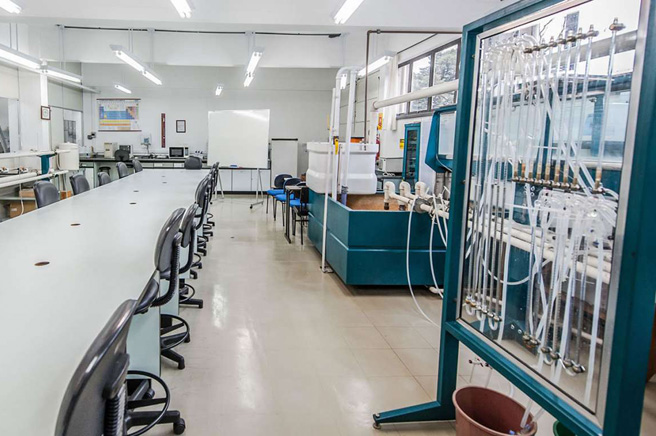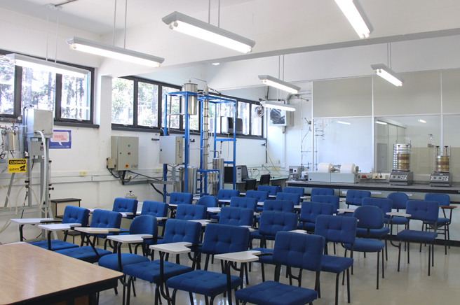 Laboratório para aulas práticas envolvendo operações unitárias como destilação, moagem, umidificação, secagem, análise granulométrica, sedimentação, cristalização, extração sólido-líquido e separação por membranas.