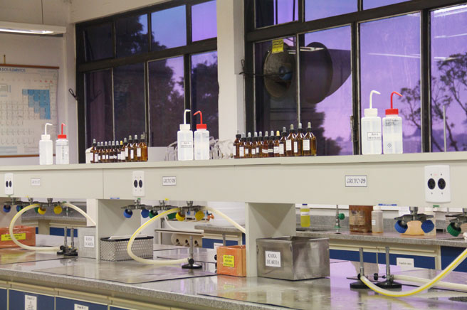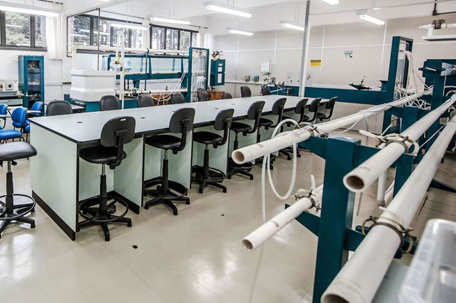 Laboratório de ensino de mecânica newtoniana, rotações, oscilações, óptica, fluidos e termodinâmica, eletricidade, magnetismo, ondas eletromagnéticas e física moderna.