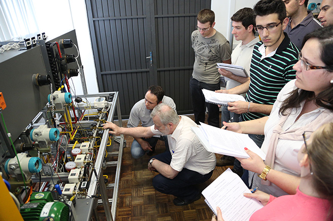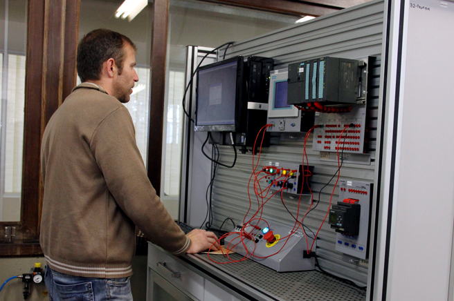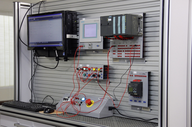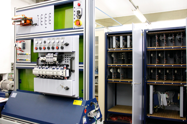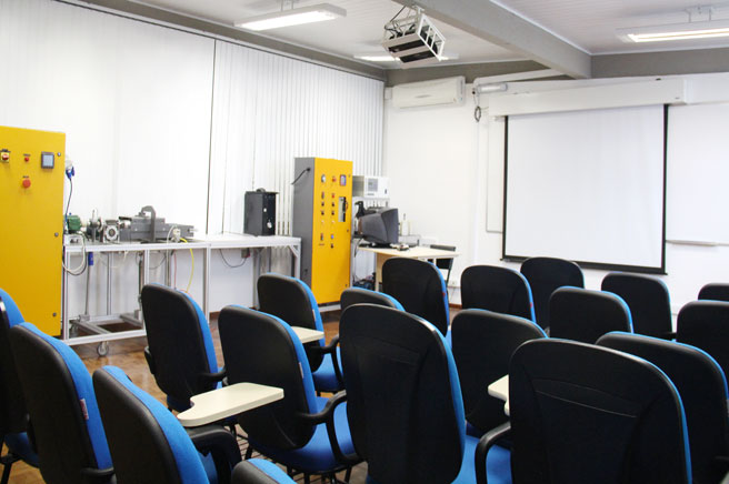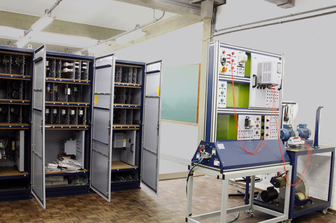 Laboratório de ensino destinado ao projeto e montagem de sistemas de comando, proteção e controle de motores de indução trifásicos, servo motores e motores de corrente contínua.