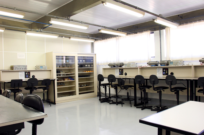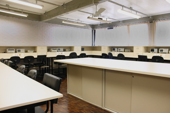 Laboratório de ensino de mecânica newtoniana, rotações, oscilações, óptica, fluidos e termodinâmica, eletricidade, magnetismo, ondas eletromagnéticas e física moderna.