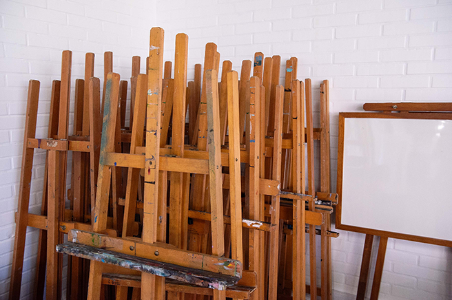 Em área de 140m², pé direito de seis metros, fundo infinito em branco e em preto, equipado com luz continua, com flashs/acessórios e câmeras DSLR profissionais