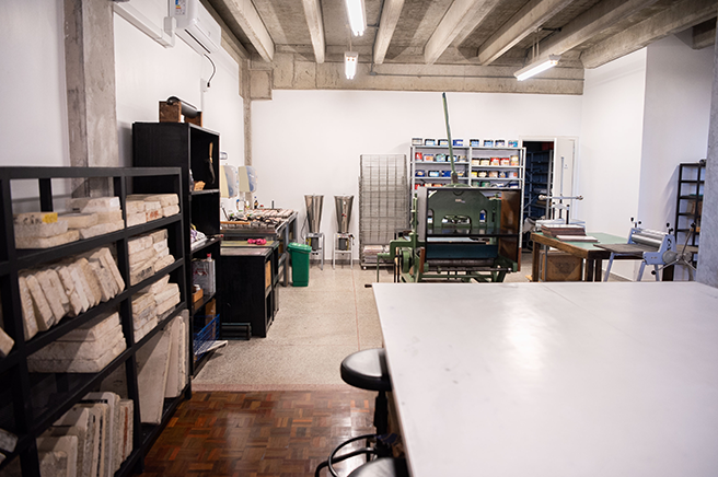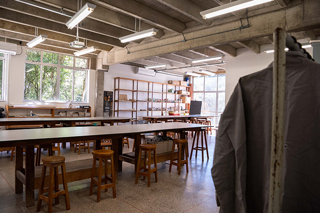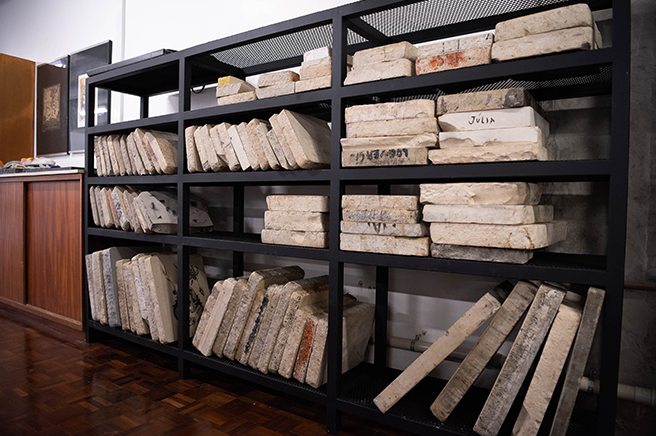 Conta com acervo de materiais de revestimentos utilizados no design de interiores, tais como amostras de porcelanatos, laminados, catálogos, entre outros.