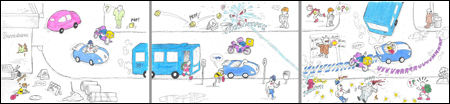 QH é uma história em quadrinhos não convencional composta por 13 ilustrações retangulares distintas que formam uma grande cena/seqüência impossível de realmente acontecer. Ela permite o inicio da leitura a partir de qualquer um dos quadros. Retrata o caos e medo da vida contemporânea nos centros urbanos através da comicidade.