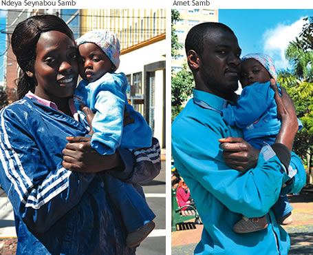 Como uma mãe canguru, Ndeya Seynabou Samb transita pela praça carregando um bebê e entregando viandas. Pela manhã, ela prepara os pratos para distribuí-los durante o meio-dia à clientela senegalesa. Apesar de simples, o empreendimento vem dando certo e a receita é caseira: os ingredientes são brasileiros, mas a elaboração tenta levar em conta os padrões do país de origem. A culinária de lá tem pescados e mais verduras e legumes, ingredientes caros por aqui. A solução foi dar ao arroz e frango um tempero senegalês.