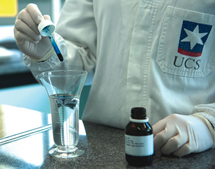 Apesar das ações de ensino, a Farmácia Escola tem ainda outros objetivos, como o de desenvolver parcerias com instituições públicas no cuidado à saúde. É assim com o Hospital Geral, por exemplo. "Temos nossa própria formulação e fornecemos alguns medicamentos para o Hospital Geral, principalmente, soluções orais para o setor neonatal", explica Camila Romana Dalpiccoli, que é a farmacêutica responsável pela unidade. Cabe à Camila auxiliar os alunos que passam pela Farmácia Escola.