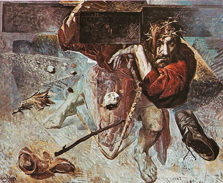 "O que ele quer representar não é a corriqueira história repetida inúmeras vezes por muitos pintores. O que o ofende mais é o cínico, o irrisório, o mortal comportamento da sociedade atual. É a dor da incompreensão de todos para com todos", diz a pesquisadora no livro Aldo Locatelli, a respeito do realismo empregado na obra. "É esse sentimento que o leva a analisar uma obra sobre crucificados, o livro A Paixão de Cristo Segundo o Cirurgião, do francês Pierre Barbet".