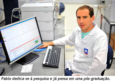 Correr pelas ruas de Caxias do Sul e ouvir o heavy metal da banda de rock australiana AC/DC são alguns dos passatempos preferidos de Pablo Ricardo Bertelli, 29 anos, bolsista de Iniciação Científica no Núcleo de Inovação e Desenvolvimento (NID) em Produtos Naturais e Sintéticos da Universidade de Caxias do Sul. A energia do esporte e da música, atualmente, dão impulso às suas atividades nas aulas do curso de Farmácia e no Projeto Butiá 2 - Extração de Compostos Fenólicos por Ultrassom. As pesquisas desenvolvidas nesse projeto têm o objetivo de encontrar uma forma de utilização e preservação do butiá, fruto encontrado na região, como fonte de renda complementar aos agricultores. Pablo, que há três anos participa das pesquisas do NID, explica que "do butiá podemos extrair produtos naturais, os quais podem ser utilizados na indústria farmacêutica, de alimentos e cosmética". Antes de atuar neste espaço, o acadêmico desenvolvia atividades de estágio no Laboratório de Pesquisas em Alimentos.
