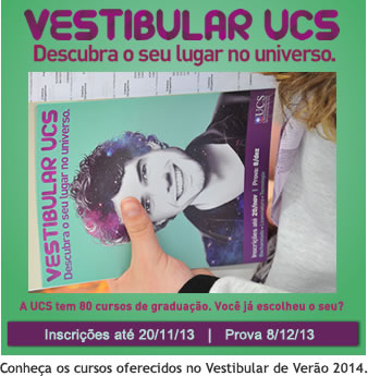 A nota da prova de Redação obtida no Exame Nacional do Ensino Médio - Enem, nos anos de 2010, 2011 ou 2012, poderá ser utilizada no Vestibular de Verão. Para isso, também no ato da inscrição, o candidato deve fazer essa opção: de substituir a prova de Redação da UCS pela nota obtida na prova de Redação do Enem em um desses anos.