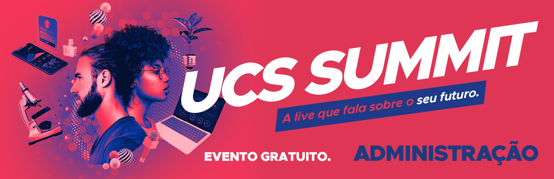 O UCS Summit é um evento 100% gratuito, apresentando uma série de conversas e palestras com professores e empreendedores de expressão nacional, abordando diferentes aspectos e as perspectivas de cada profissão. Confira a programação do curso de ADMINISTRAÇÃO.