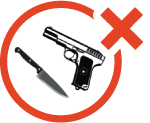 Armas de qualquer espécie (armas de fogo, facas, canivetes, tesoura, soco-inglês, arco e flecha, chicote, etc.)