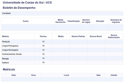 O Boletim de Desempenho do Vestibular estará à sua disposição no site após a divulgação da primeira chamada. Para obtê-lo, você deverá informar o número da inscrição e o número do CPF. Veja abaixo os modelos dos Boletins de Desempenho: