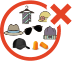 Óculos escuros, protetores auriculares, gorro, bonés, capuz, chapéu, cachecol, manta, echarpe.
