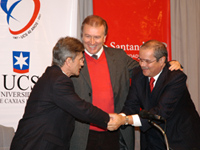 Na foto, o reitor Isidoro Zorzi cumprimenta o presidente do Santander no Brasil,