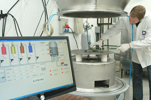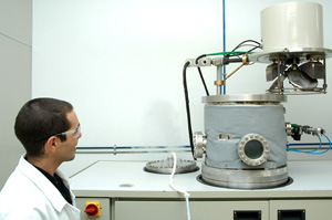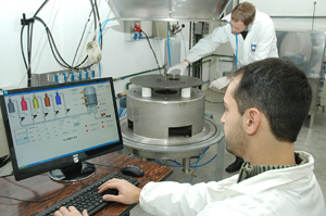 Pesquisadores do Laboratório de Engenharia de Superfícies e Tratamentos Térmicos (LESTT) operando