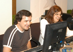 Nas fotos acima, Moisés Corá (à esquerda) e Gabriel Milan (à direita) cadastram-se no UCS Sempre.