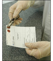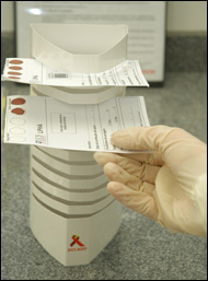 papel-filtro, lanceta (espécie de agulha retrátil que,