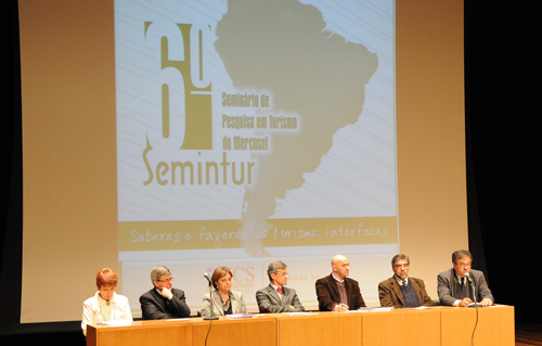 Na foto de Jonas Ramos, a mesa de abertura do 6º SeminTur: professora Marcia Maria Cappellano dos Santos, coordenadora do