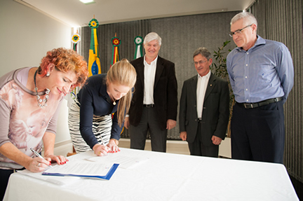 A solenidade de assinatura (foto) ocorreu na sede da empresa, em Caxias