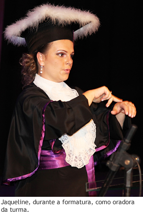 Acadêmica surda foi a oradora da turma na formatura do curso de Pedagogia.