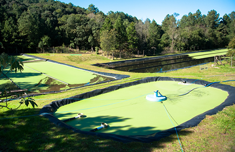 quatro lagoas de tratamento (lagoa aerada; lagoa de